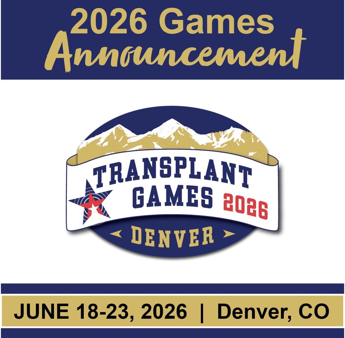 June 18 @ 8:00 am - June 23 @ 5:00 pm “Transplant Games of America 2026” / June 18-23, 2026 / Denver, Colorado / www.transplantgamesofamerica.org